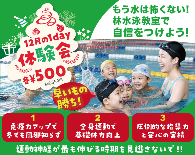 【12月体験のご案内】元オリンピック代表コーチ 村上二美也監修の水泳・体操教室!!